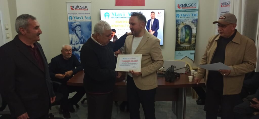 Sanatseverlerin büyük bir ilgiyle takip ettiği programın sonunda, bu unutulmaz geceye emek veren Nuri Yıldız, Cuma Özcan ve Furkan Pehlivan’a, BİLSEK Başkanı Abdulgaffar Polat ve Mavi Yol Yayın Yönetmeni Celalettin Kurt tarafından teşekkür belgeleri takdim edildi.
